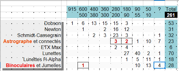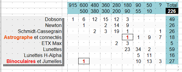Tableau des instruments : (Pour la Liste détaillée des instruments cliquez ici)