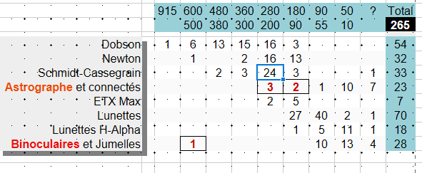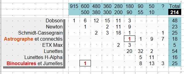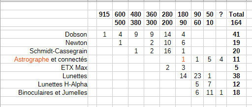 Tableau des instruments : (Pour la Liste détaillée des instruments cliquez ici)